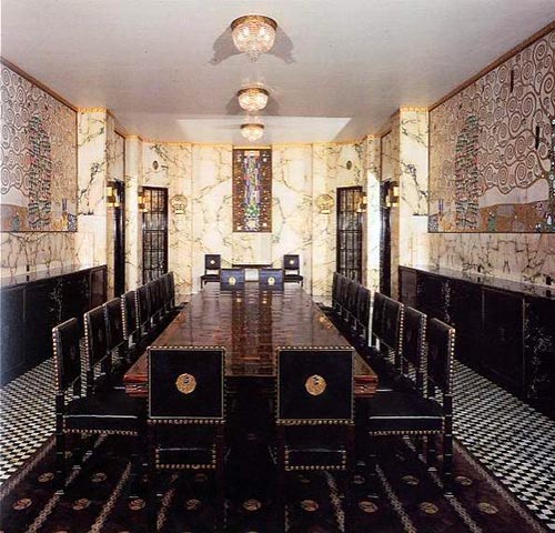 In 1904, the Wiener Werkstätte received their most important commission: the construction of a palace in Brussels for the industrialist Adolph Stoclet . Josef Hoffmann asked Klimt to decorate the dining room, for which the painter designed three panels, later executed in mosaic.