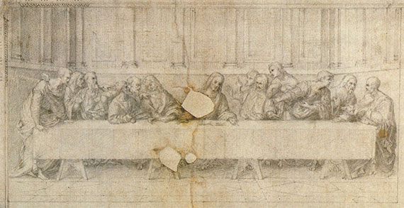 In fact, the hole left by a nail hammered into Christ’s head was found: here Leonardo had hung the threads to draw the entire perspective.