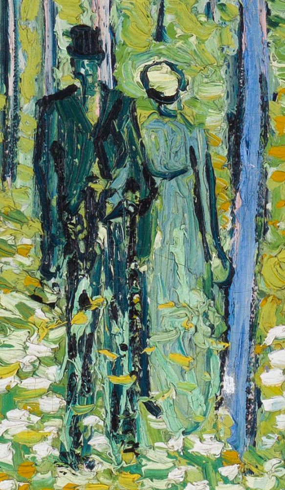 In the center of the painting, a couple is surrounded by lush flora mixed with trees that fill the entire canvas. Everything the artist captured on canvas was then brought back to the studio, where he corrected elements or added effects. In this work, we see the fusion of Impressionist and Van Gogh techniques, recognizable above all by the brushstrokes that dominate so many of his other famous works. There isn’t much evidence to identify the two figures seen in the work, but from the clothes they wear, they strongly resemble those of Parisians during the holidays. On these occasions, people used to take walks in the parks.